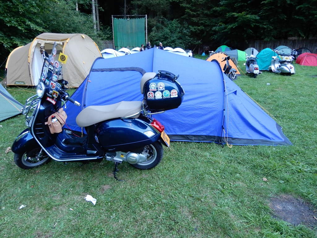 scooter and tent in perfect harmony...