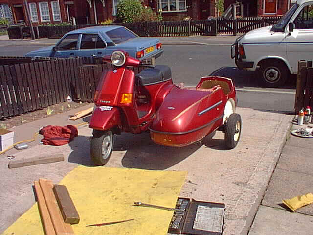 this morning...22/7/99...as it was only just over 50 miles away I rode down to Watsonian/Squire to have all the bits fitted to the PX...and returned to finish the Cosa...