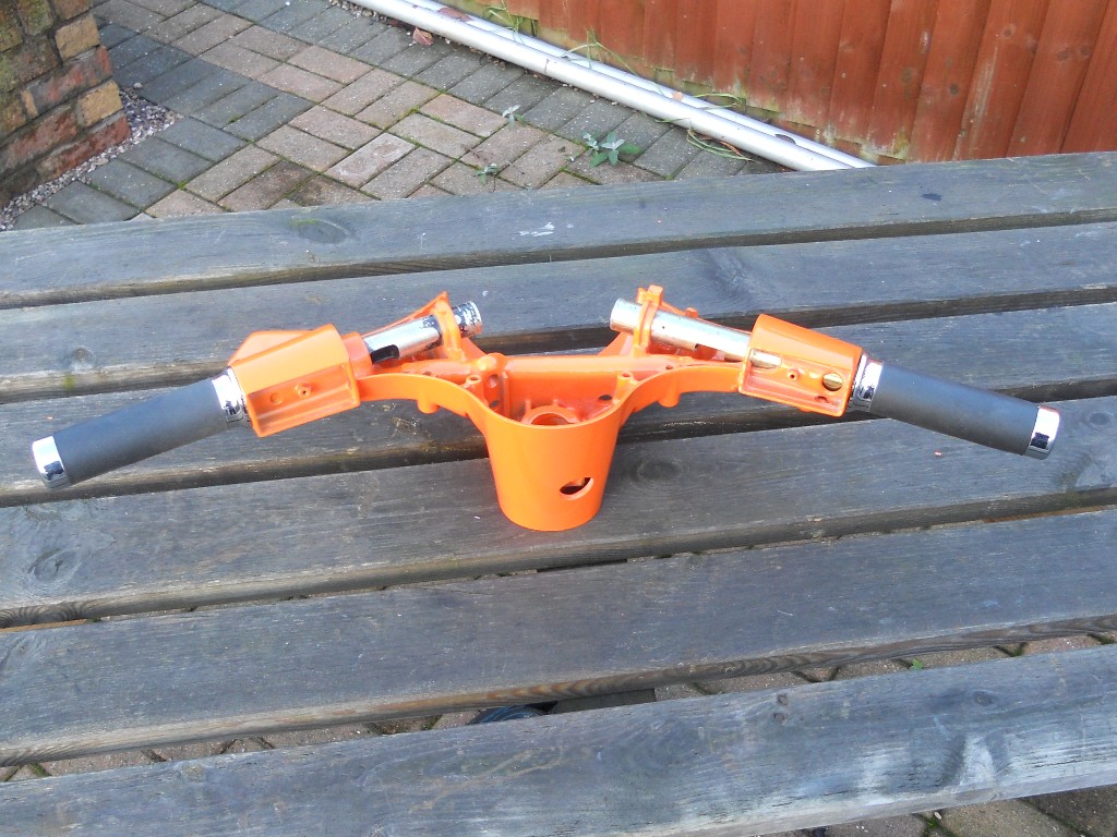 after the T5 was smashed up I bought a very straight rot free 2001 PX125 Disc frame off eBay for a rebuild...it had already been shot blasted so all I had to do was have it prepped and painted...