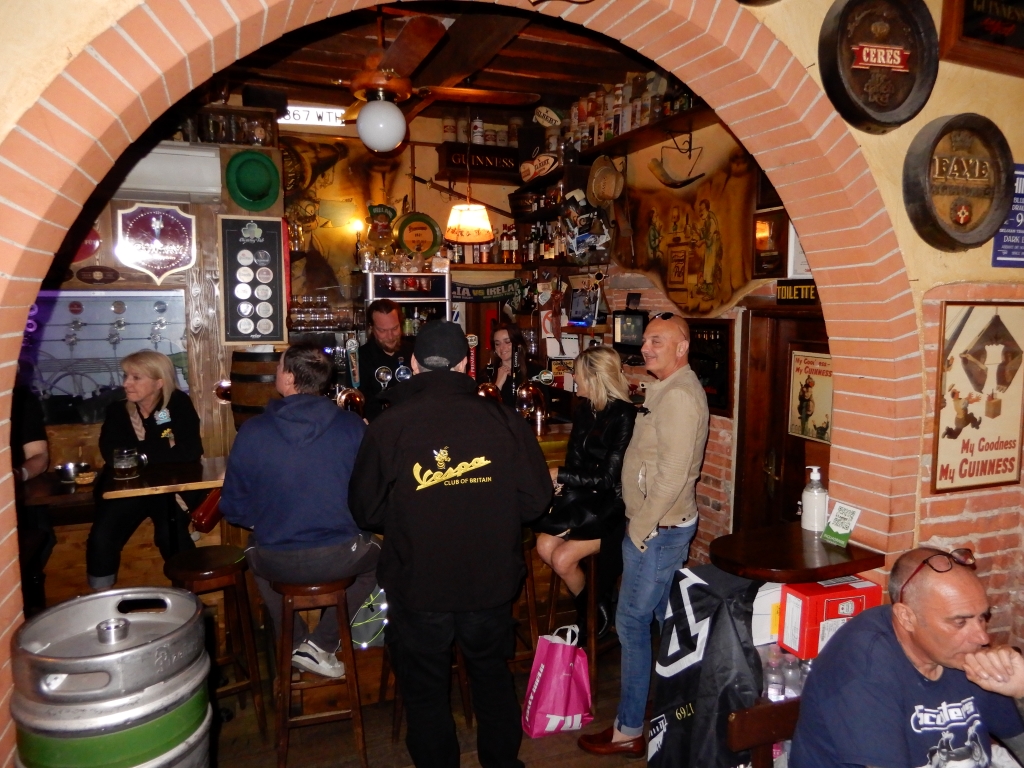 it's now Friday evening and all the the Brits have met down at the Chimney Pub in Pontedera...